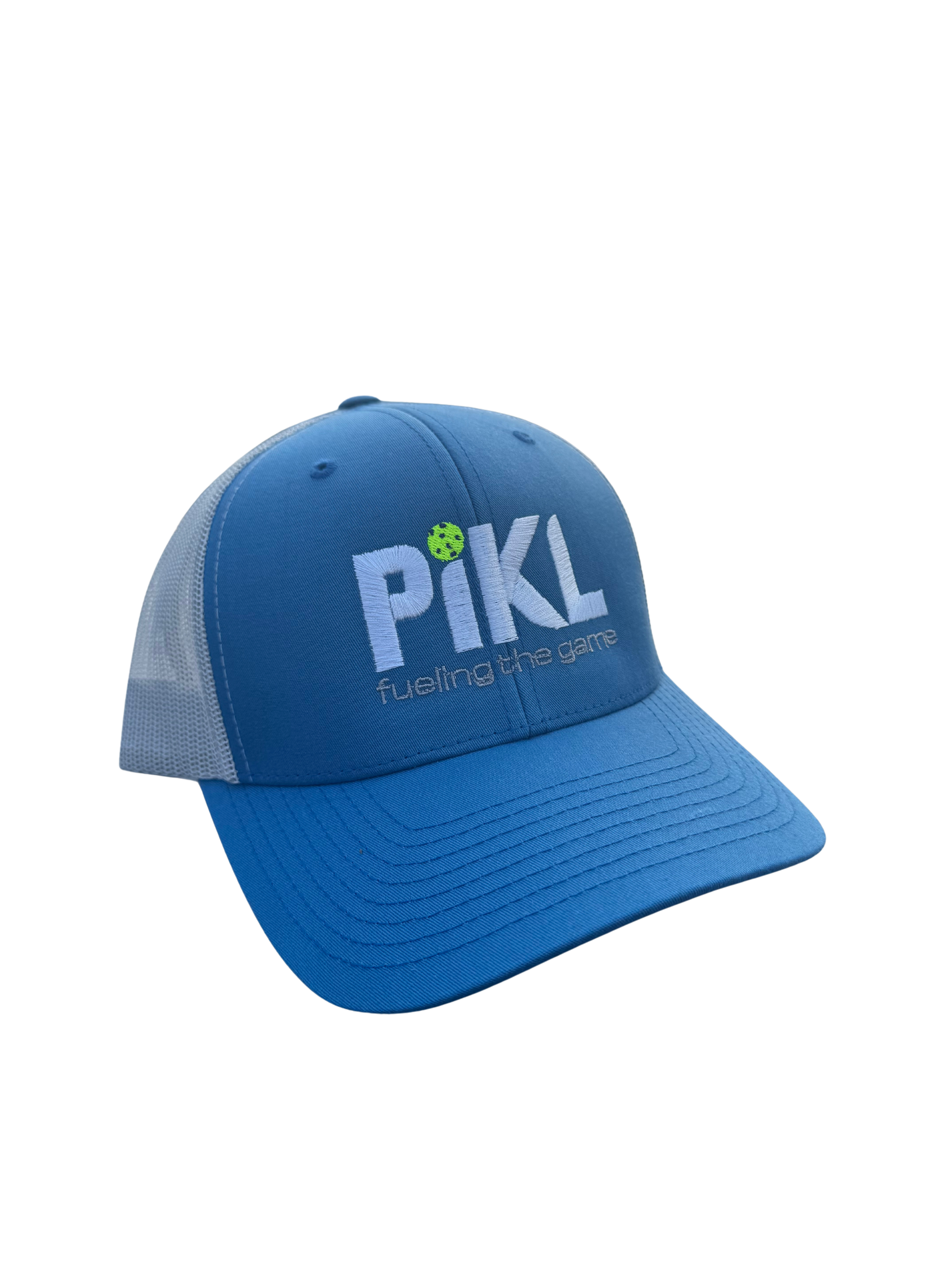 Steel Blue/Silver Retro Trucker Snapback Cap (White Logo)